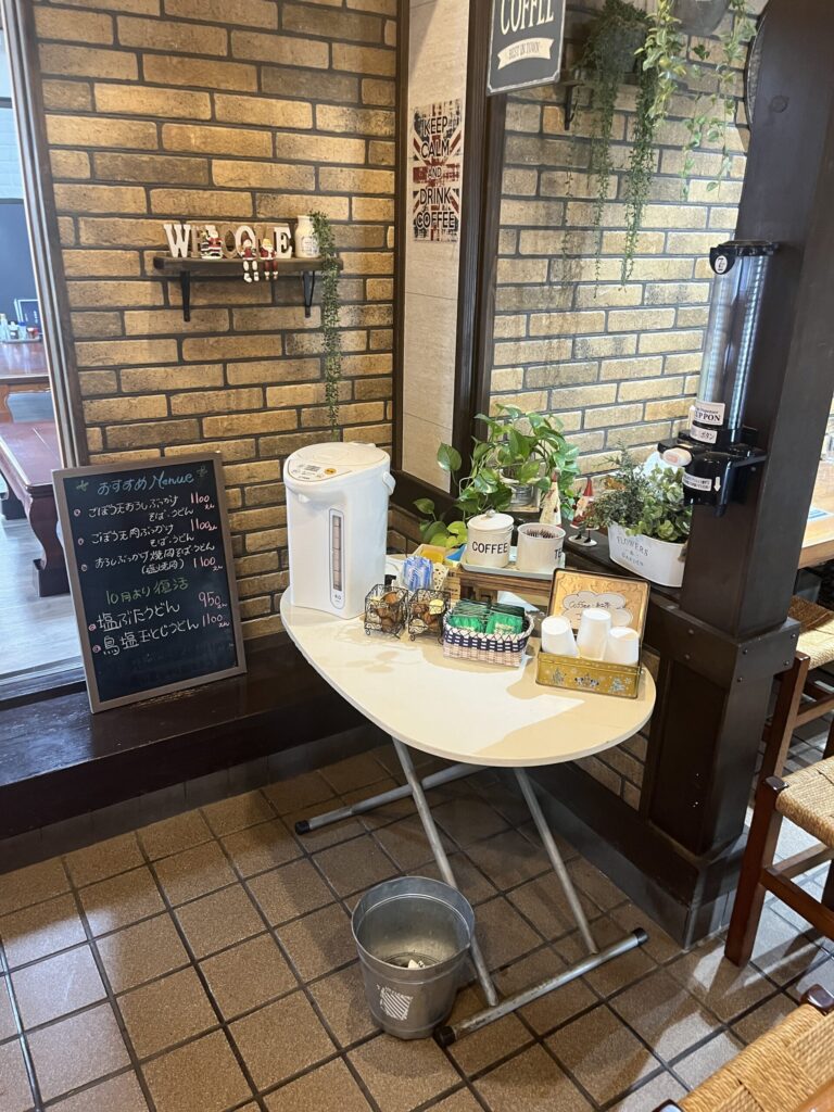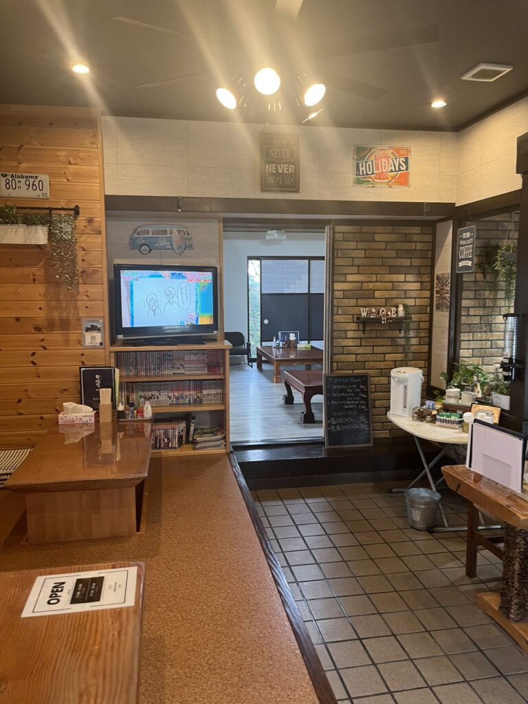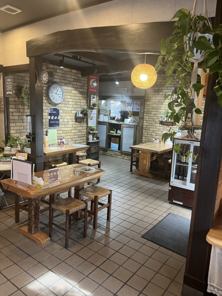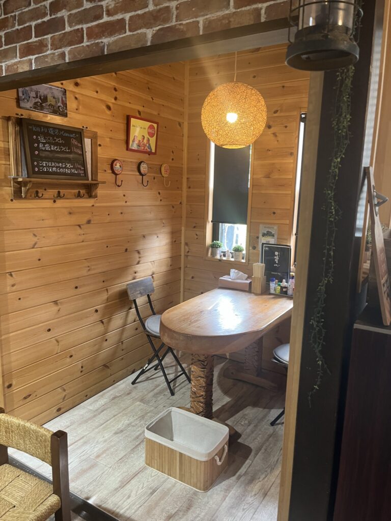 店内は、テーブル席、小上がり席、座敷席があり家族連れやグループでも利用しやすい広さになっています。木目調のテーブルと椅子、レンガ調のアクセント壁で温かみのある空間です。