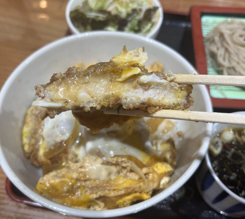 かつ丼は王道のかつ丼で玉子とじのお手本のようなビジュアルです。甘辛のつゆを吸った衣を纏ったカツは食べ応え抜群。お蕎麦屋さんのかつ丼は昔なつかしい味わいです。