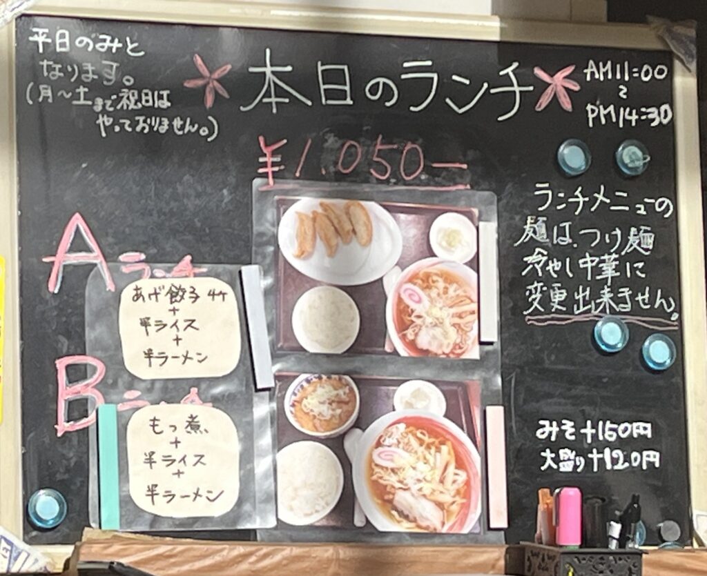 Aランチ(あげ餃子4ヶ+半ライス+半ラーメン)1,050円