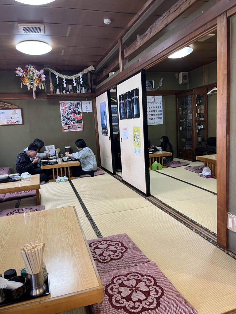 入口付近にはカウンター席があり一人でも入りやすい。座席席は襖で仕切られた畳の座敷があり、ゆったりくつろげる雰囲気です。