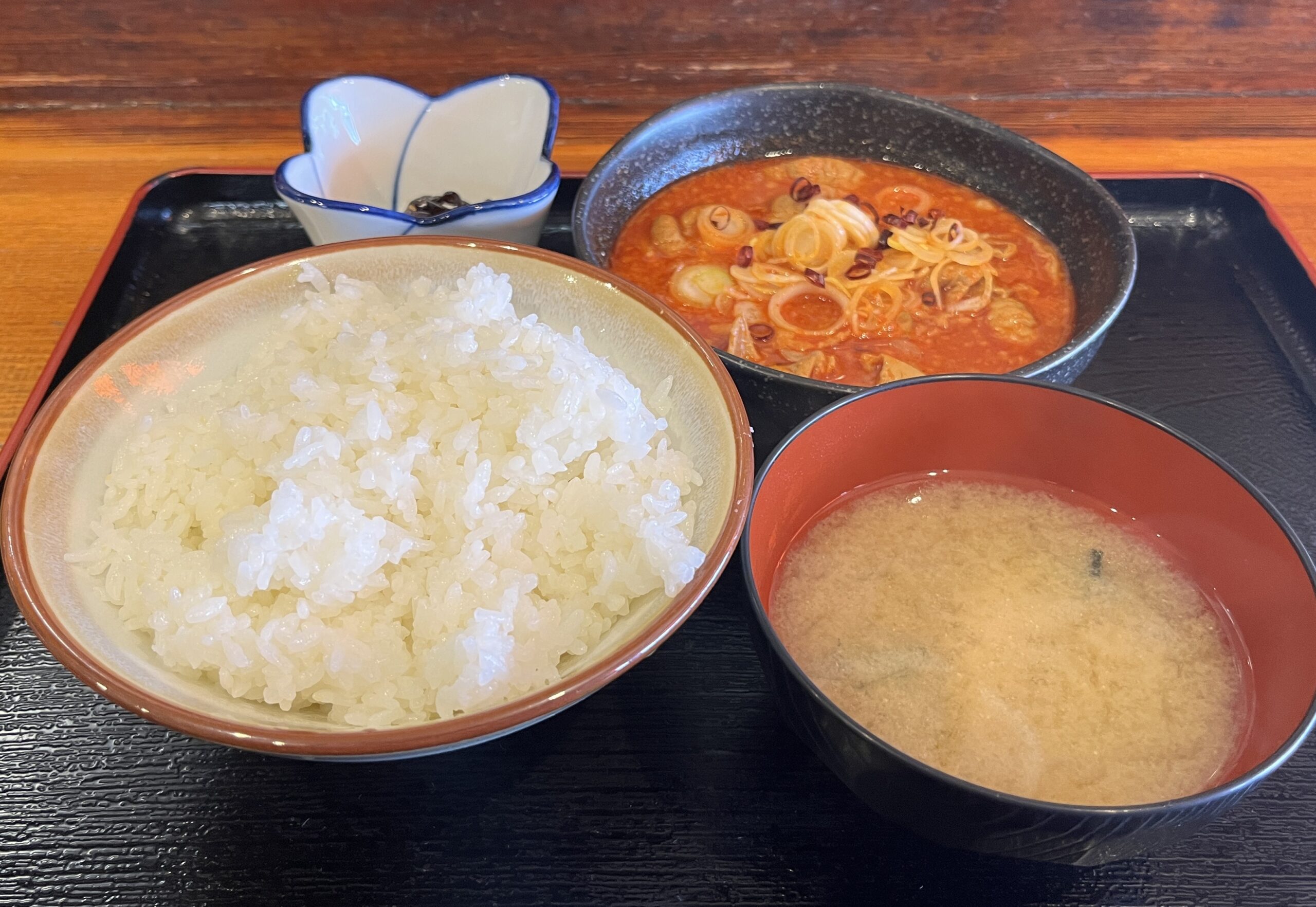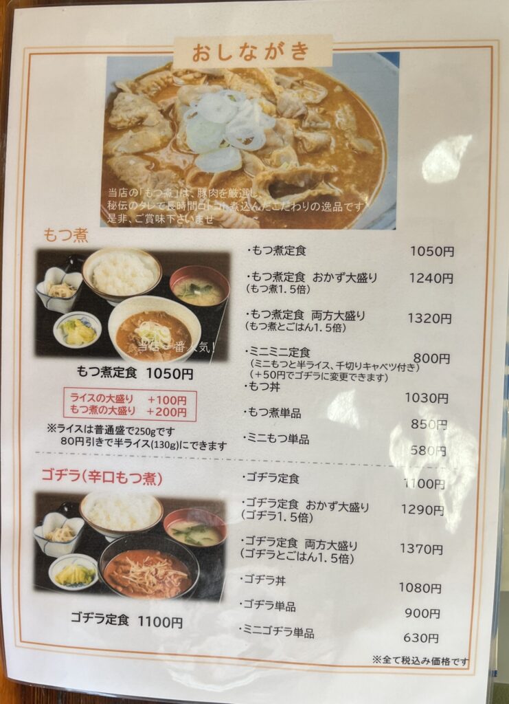 もつ煮で有名なお店ですが、もつ煮の辛口をあまり見た事がないのでゴヂラ定食を注文しました。