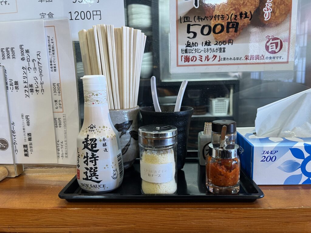 昔ながらの定食屋風で親しみやすい外観でm黄色い看板とオレンジのテントが目印になります。駐車場は広めで車利用も安心。