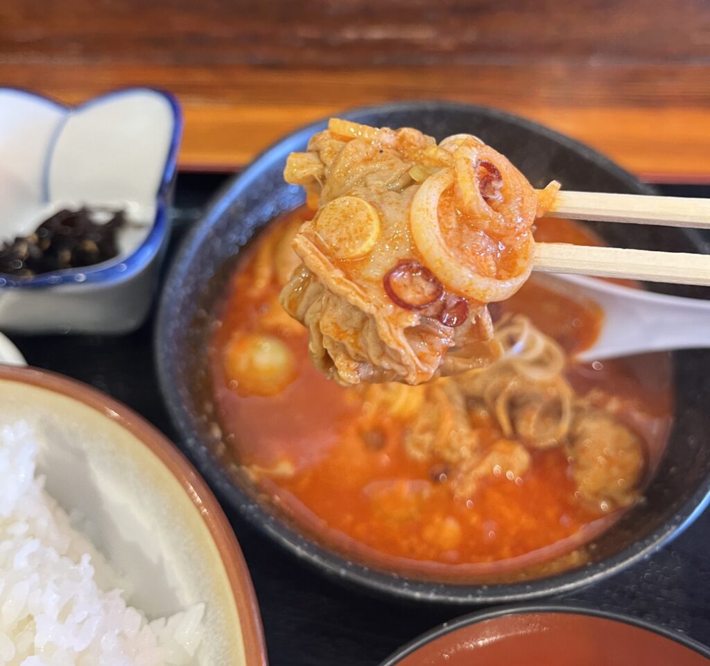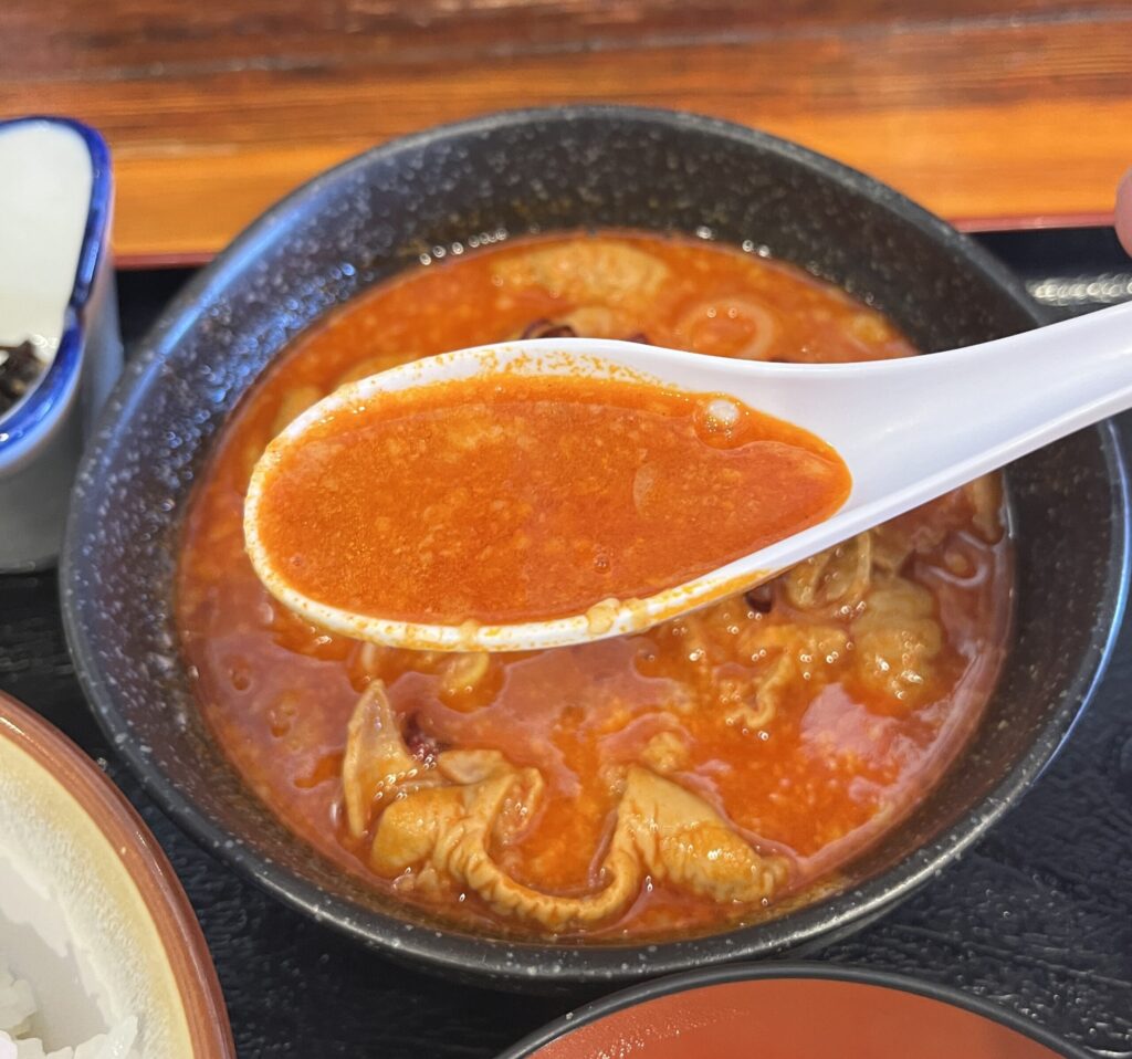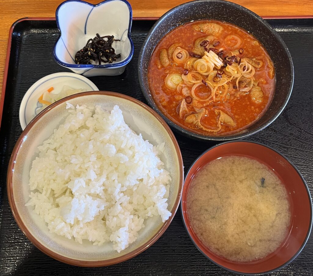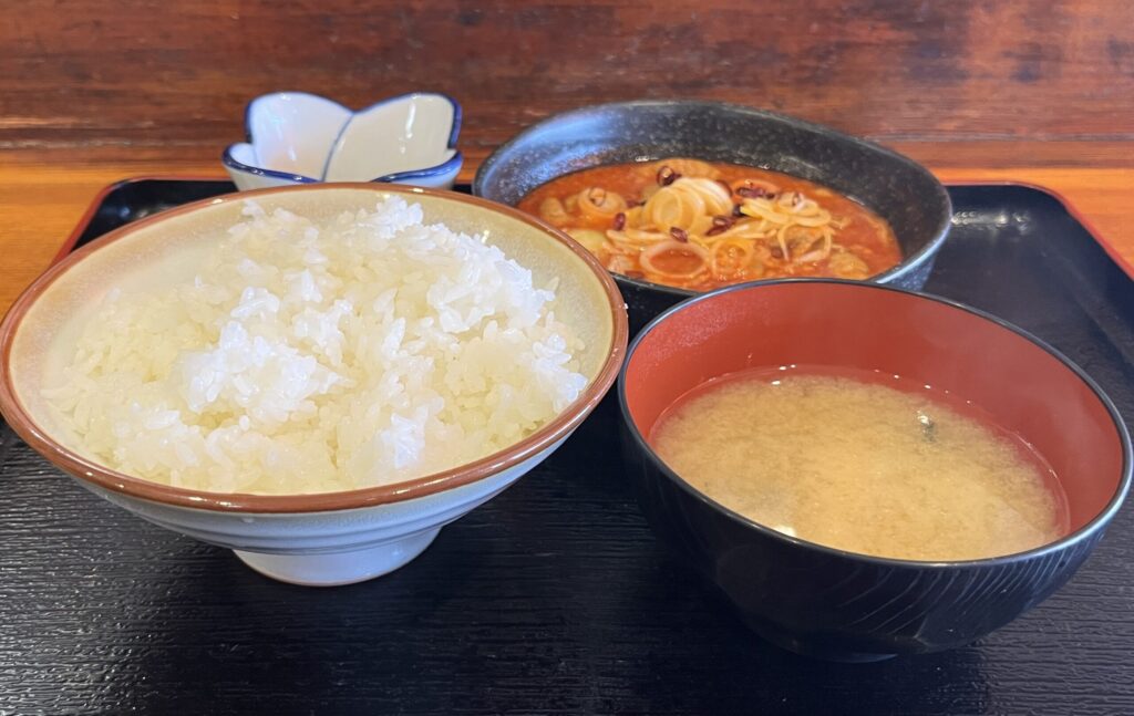 普通のもつ煮と違い、見た目は真っ赤でインパクトがあります。しかし実際食べると見た目ほど辛くなく旨味がしっかりあってご飯がめちゃくちゃ進みます。トロトロになるまで煮込まれたもつが絶品でらかくて臭みがありません。特に寒い時期にはおすすめの一品です。