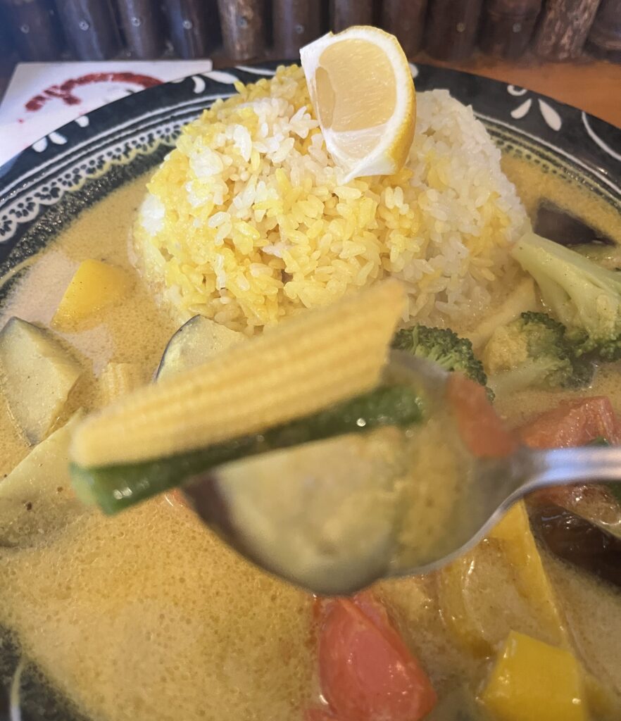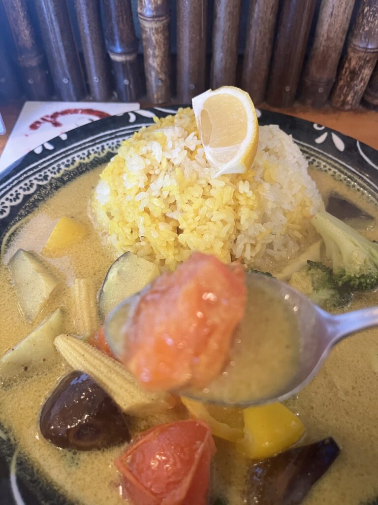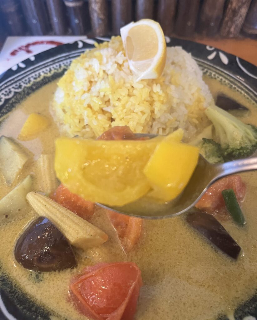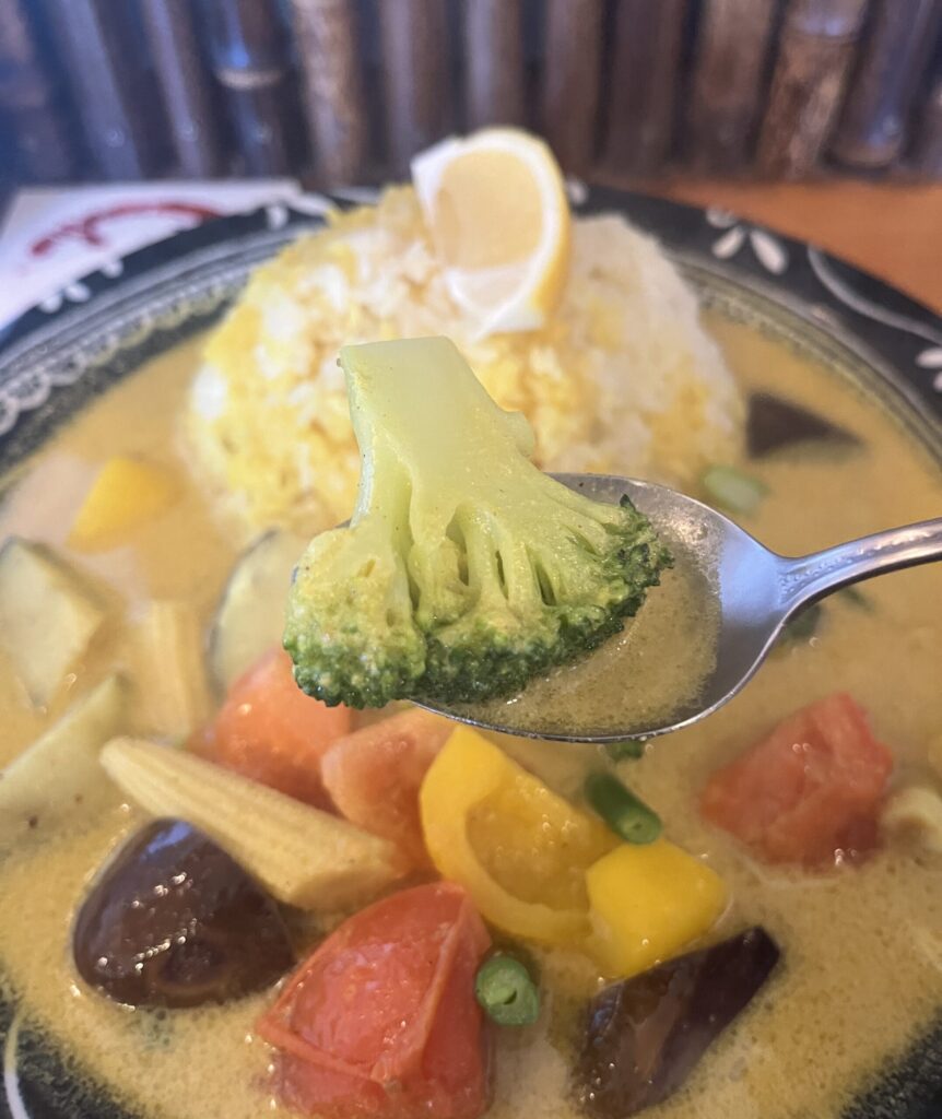 野菜はかなりの量があります。スープはココナッツベースで中辛という事もかなりまろやかです。