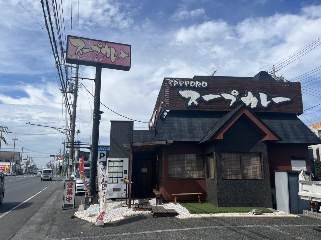 国道254号線沿いにあり、「スープカレー」と大きく書かれた看板が目印です。