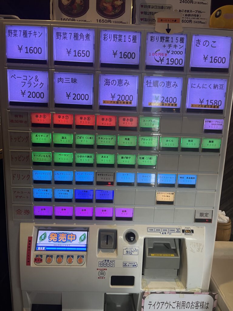 入口横にはスープカレーの自動販売機もあります。