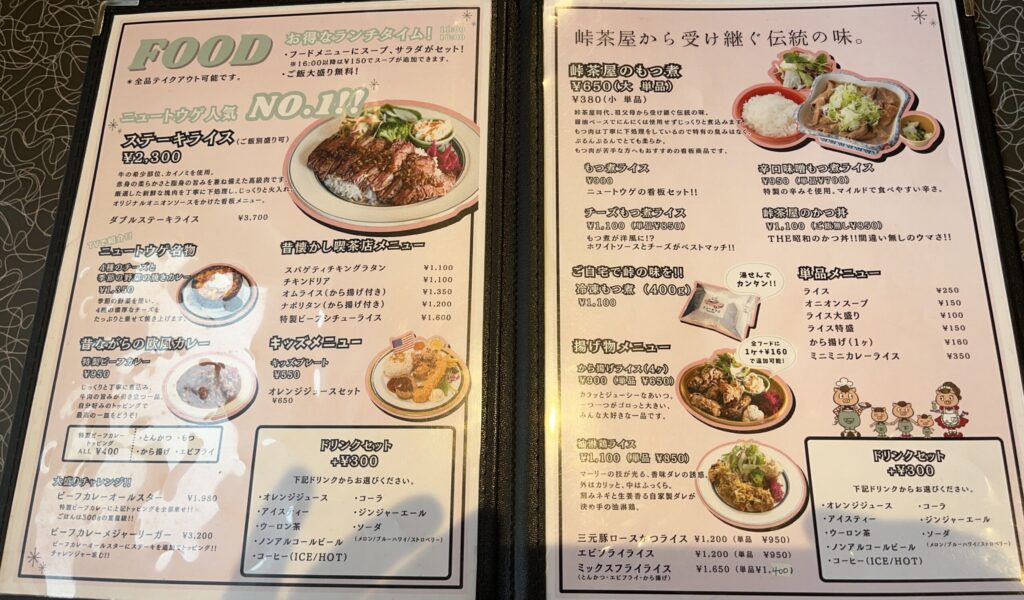 - 看板メニューのもつ煮を中心に豊富なメニュー