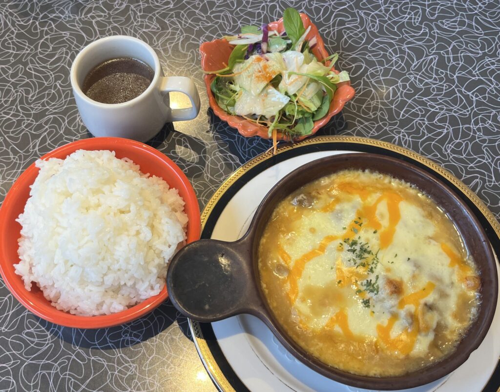 看板メニューになっているもつ煮ベースのチーズもつ煮定食を注文。どんな料理が出て来るか分かりませんでしたが、料理が運ばれてめちゃめちゃ美味しそう!