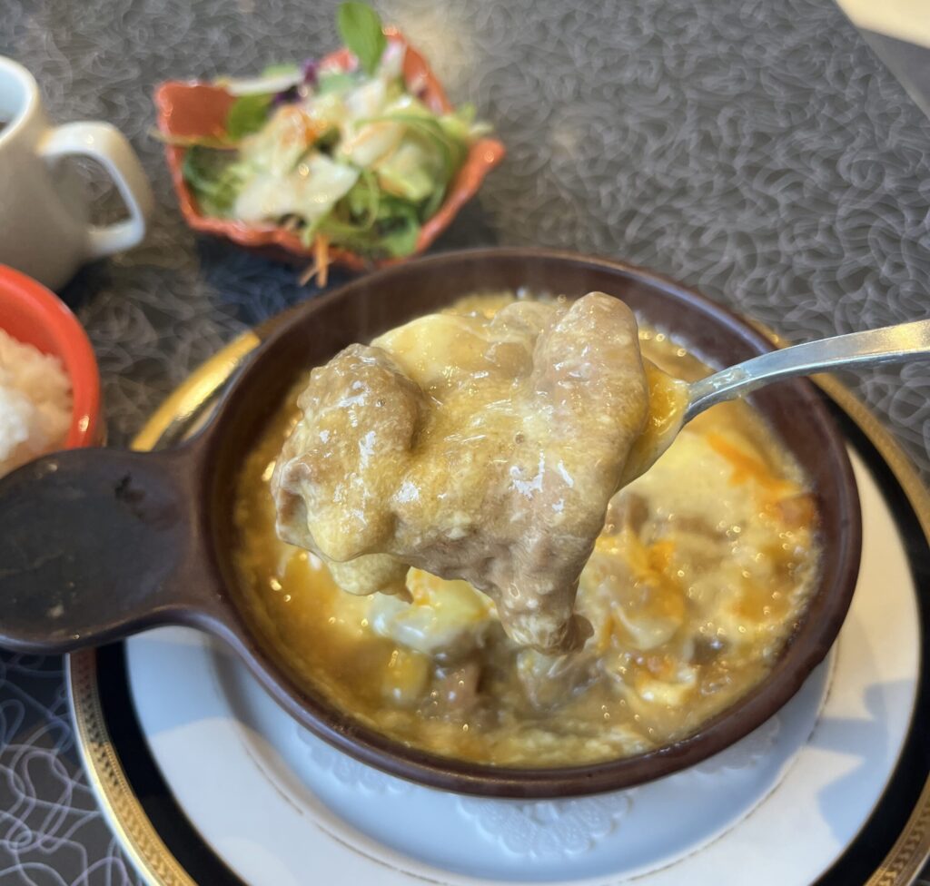 もつ煮自体は柔らかくて臭みがなく食べやすい。濃厚なチーズが旨味を更に引き立て洋風アレンジながらも違和感なく味わえます。ライスの大盛りも無料なので、大盛りにしましたが、漫画盛りで出てきました。しかし器自体はそんなに大きくないので、全然余裕でいただけました。