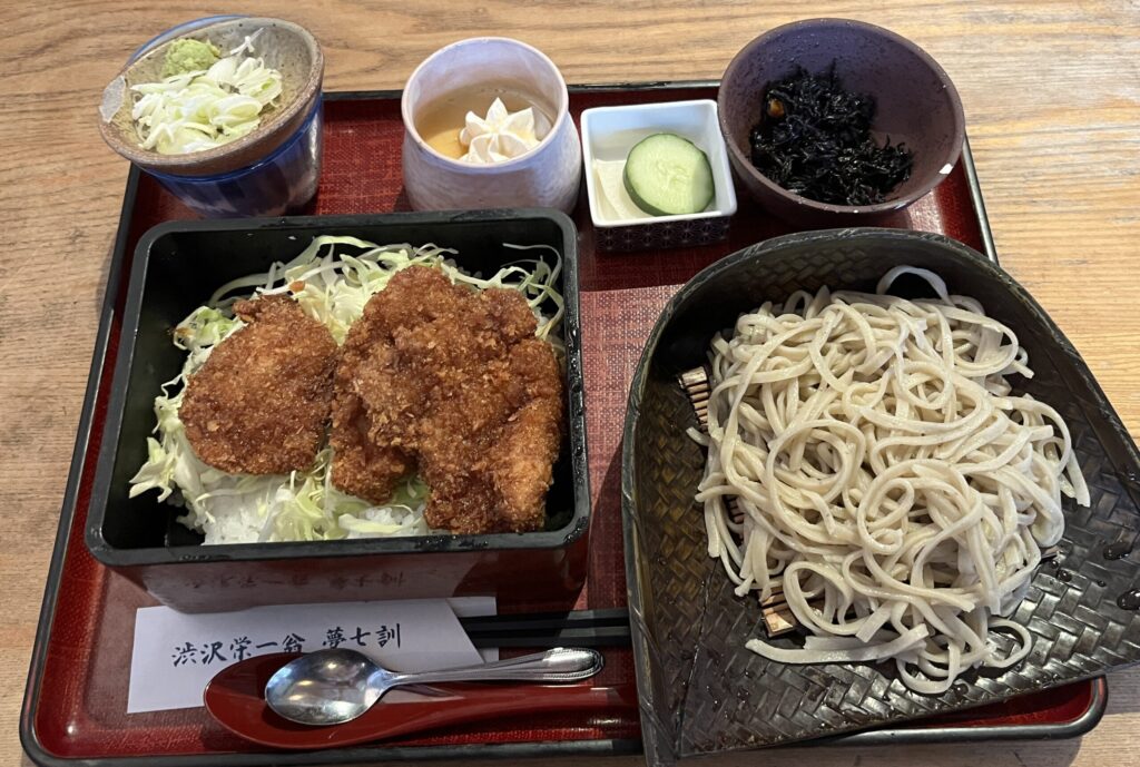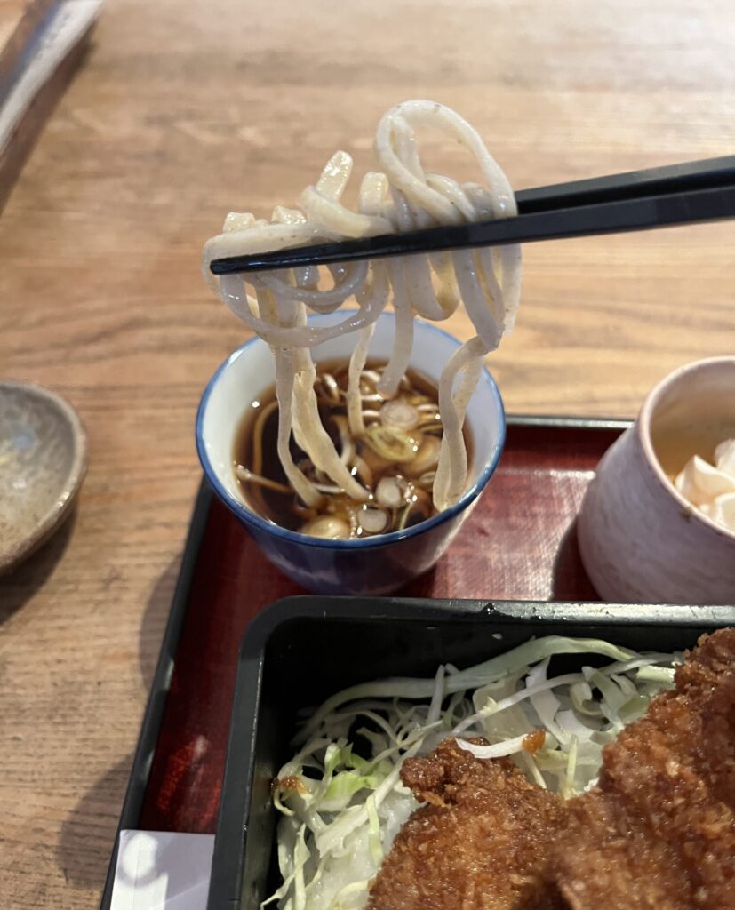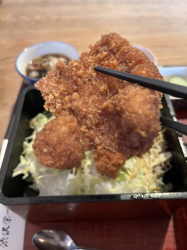 かつ丼は大きめのかつがどんぶりにどっしり乗っていて予想以上のインパクト。セットのうどんも手打ちでコシがあり満腹感がハンパありません。