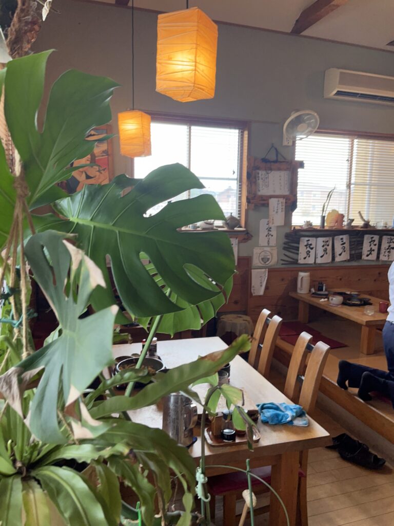 周囲には小さな庭や植栽があり、全体的に落ち着いた雰囲気の古民家風の佇まいです。