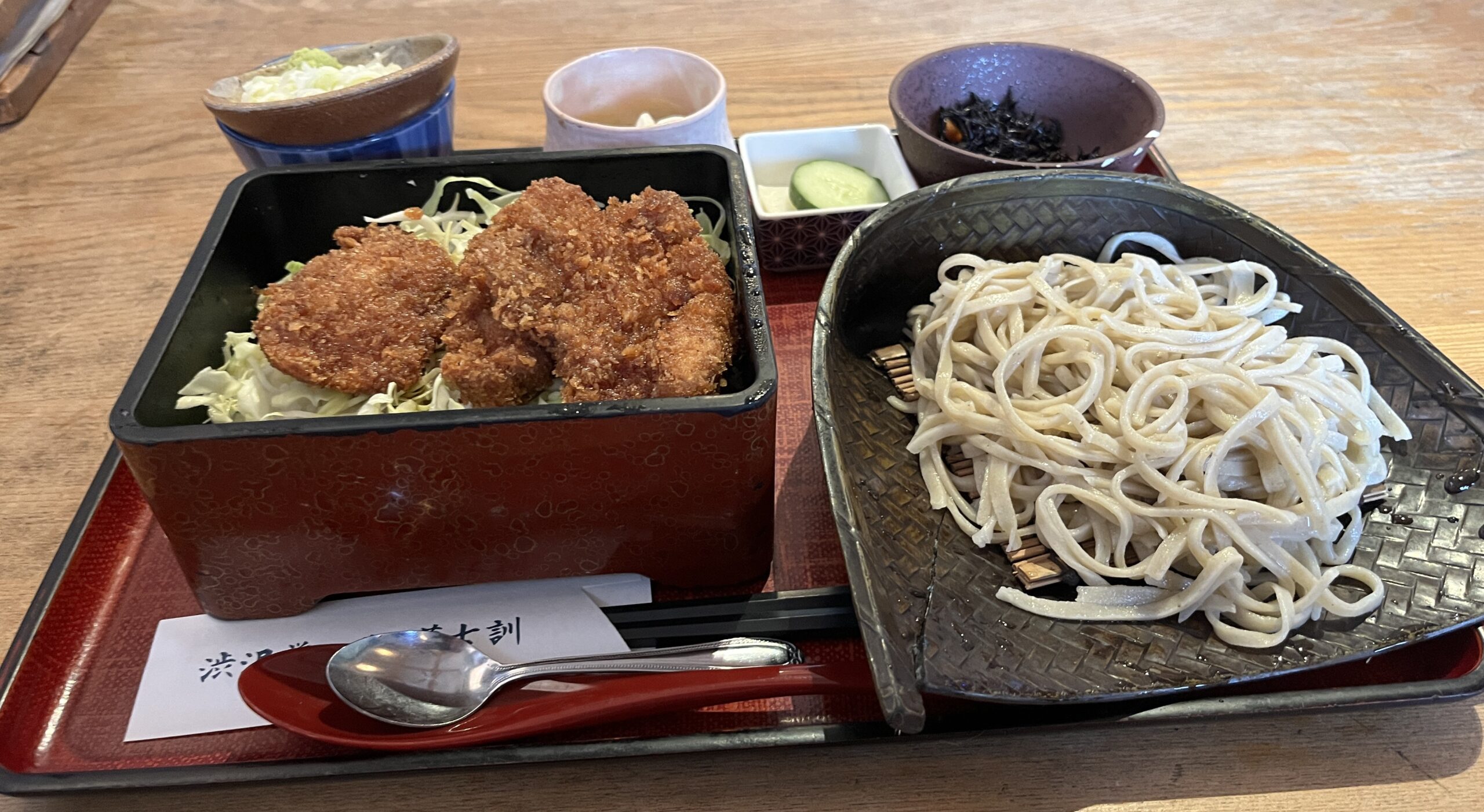 かつ丼は大きめのかつがどんぶりにどっしり乗っていて予想以上のインパクト。セットのうどんも手打ちでコシがあり満腹感がハンパありません。